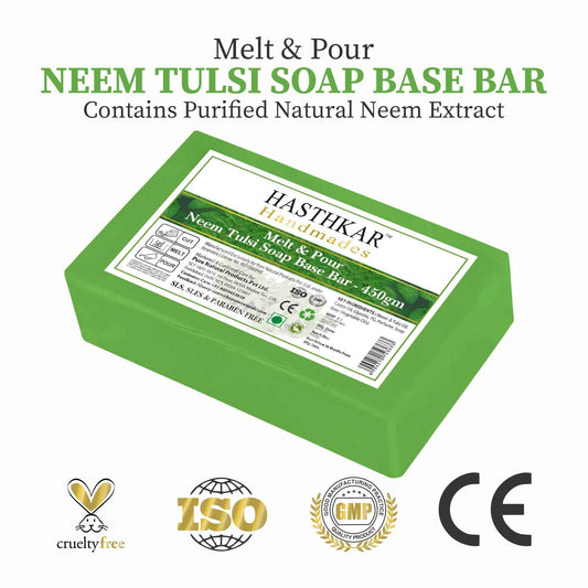 Hasthkar SLS & Paraben Free Neem Tulsi Glycerine Soap Base Bar- 450 Gm